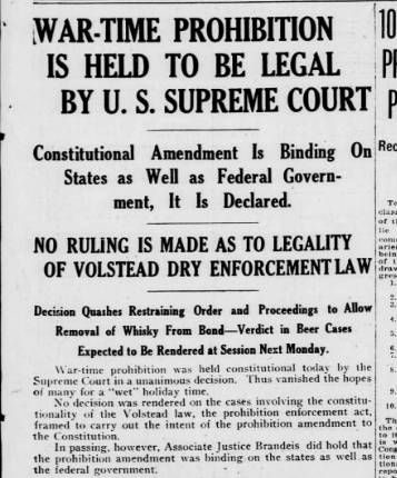 PDF “Wartime Prohibition Is Held to be Legal” December 15, 1919, Evening Star PDF “Every Dry Law Upheld” June 7, 1920, Evening World