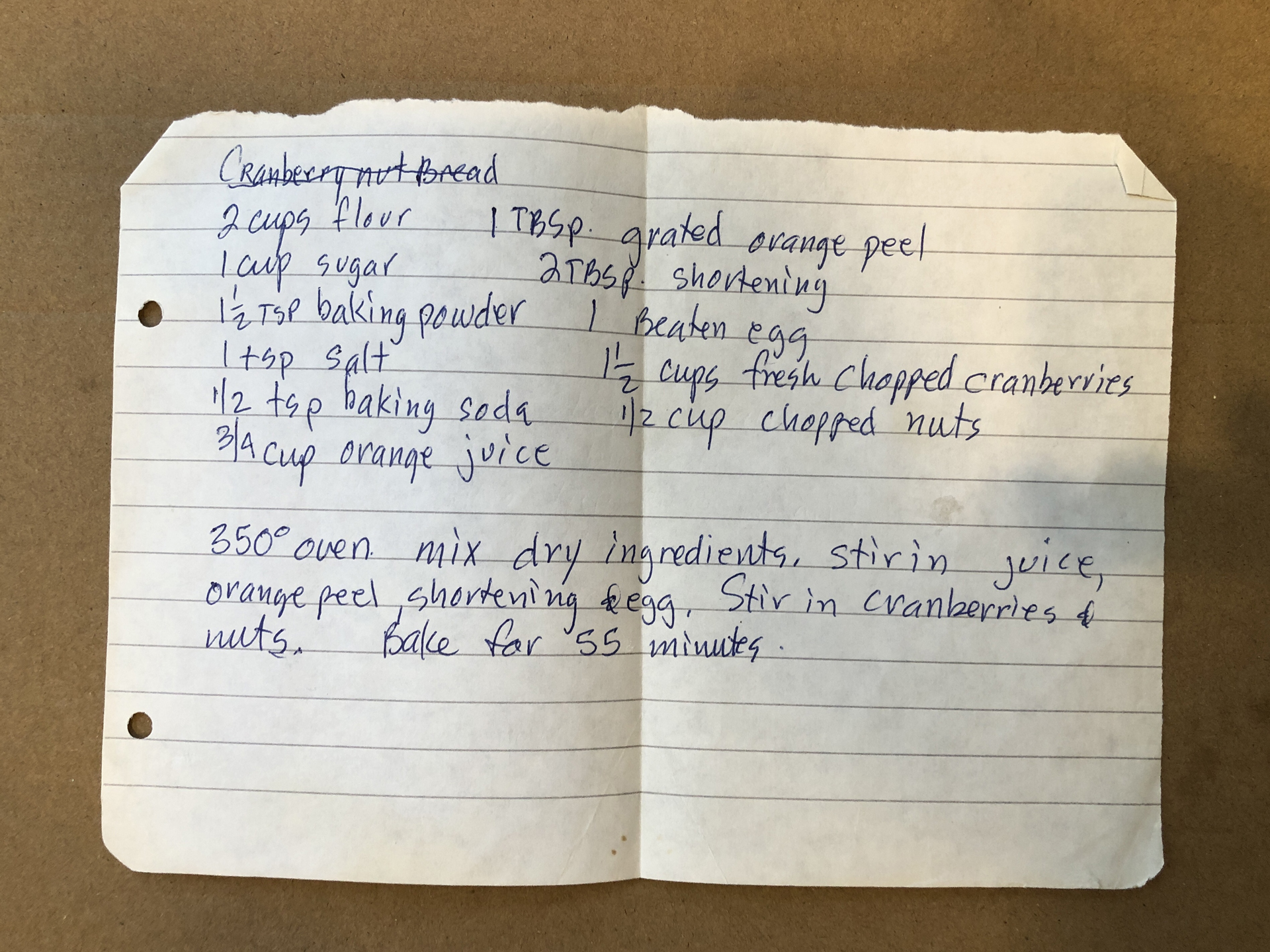 With Christmas approaching I’m considering switching up my recipes. Flipping through my copy of The Joy of Cooking” cookbook, I found a few handwritten recipes from over thirty years ago. My sister-in-law had shared a Bishop’s Bread recipe that might be fun to try again. There is a cranberry walnut bread that sounds like it would make a great appearance on a Christmas buffet table. I would love to find something pepperminty, though I suppose I could just sprinkle candy cane pieces on a chocolate-chip bread. That sounds tasty!