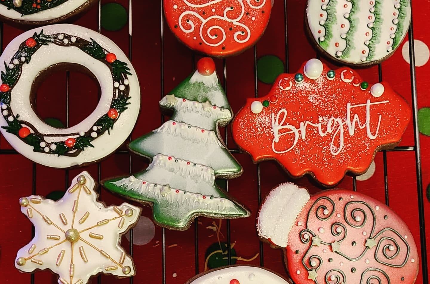 We have several friends who have taken cookie baking and decorating to new heights, an Olympics-level of skill that I could only hope for in my wildest dreams. Jennis, Leigh-Ann, and Jennie seem to effortlessly produce art with flour, sugar, and butter and their decorating often leaves me in awe. Whether birthdays, weddings, celebrations or holidays, they constantly amaze me with the photos shared on social media. My “Groovy 70s” cookies were made by Jennis Horn and they were a highlight of my birthday party. Her Christmas cookies are always amazing, you can see more of them on her FB page here.