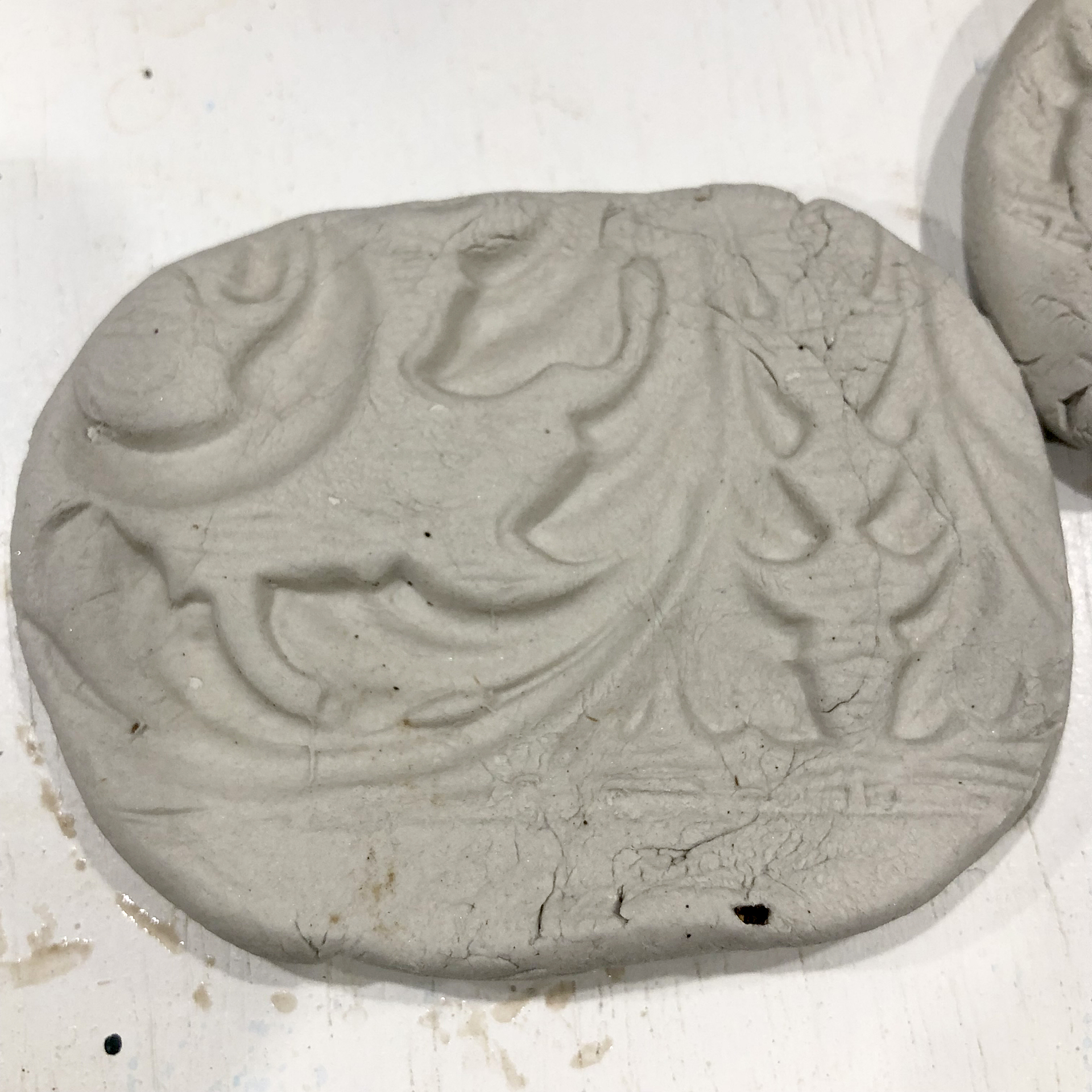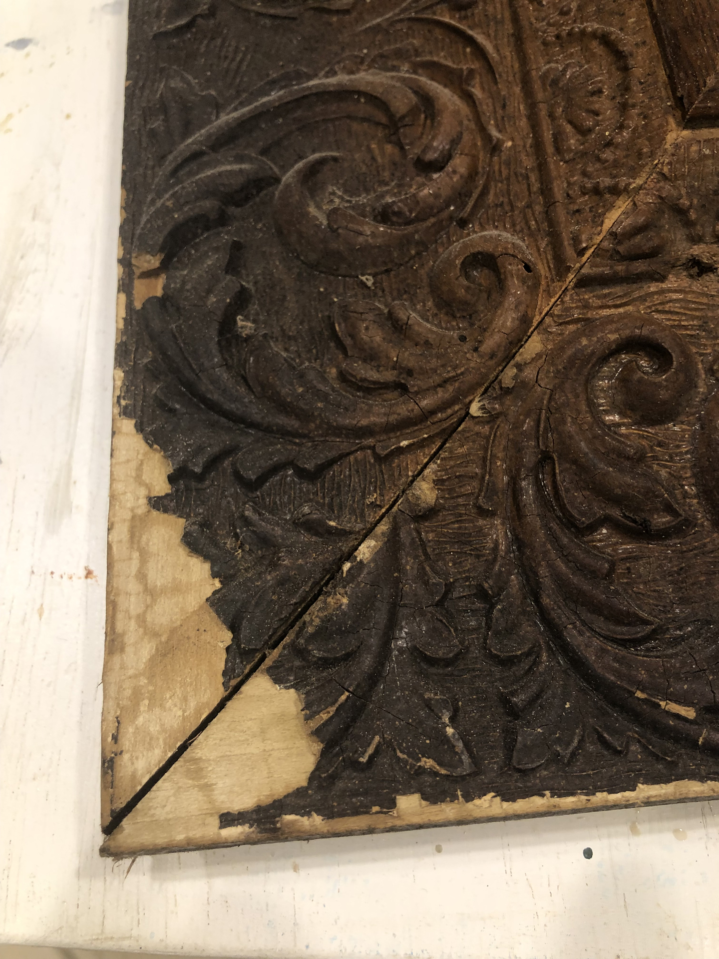 I’m having a lot of fun trying out a few new techniques. The two Victorian-era picture frames that I bought are in need of some repair. One of them is missing the cast plaster molding in a corner. I’ve cast a new corner piece from a mold I made out of DAS modeling clay. Fingers crossed that the finished project turns out!