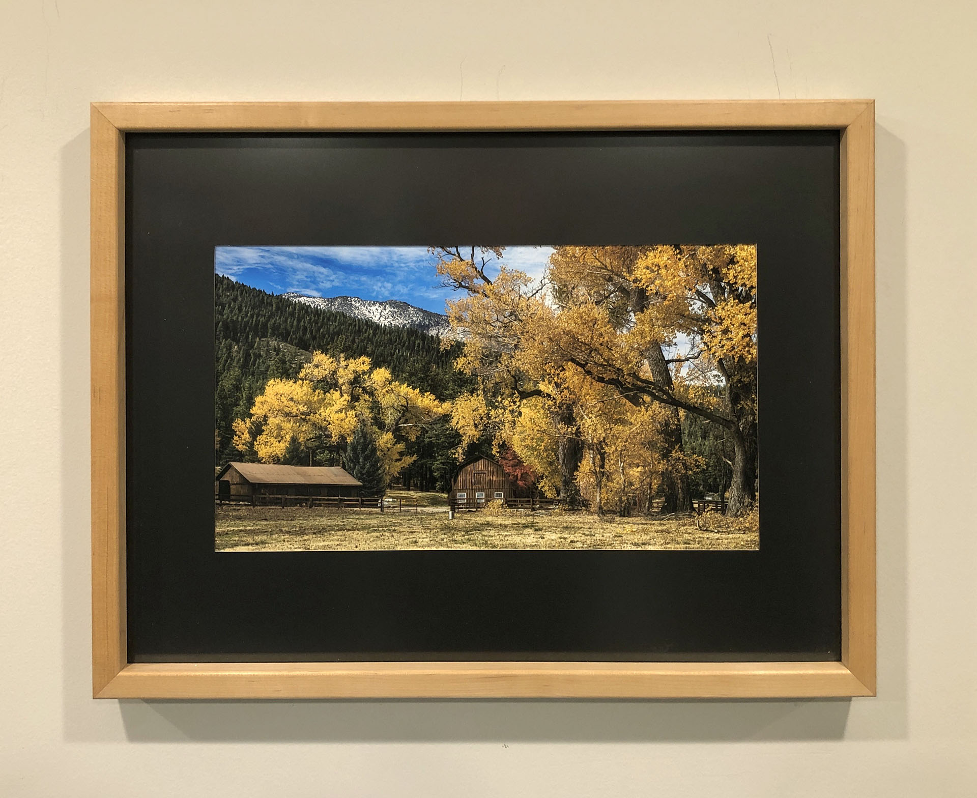 But I stopped immediately when I came across a familiar image on Facebook last month. Incredible! The red barn from my aunt’s painting, pictured in all the golden glory of fall, in a group of photos by an FB group member. Impossible! Maxine had created her oil painting back in the 60s. The barn was old then, how could it still be standing?! I’ve framed the photo and it now hangs in my Nevada-themed guestroom. It’s a brighter version of the scene Maxine painted years ago; the cottonwood trees dominate the image and nearly obscure the barn at the center of the photo. The barn isn’t red like our painting; perhaps it never was, maybe that was just another embellishment of the artist. I like it.