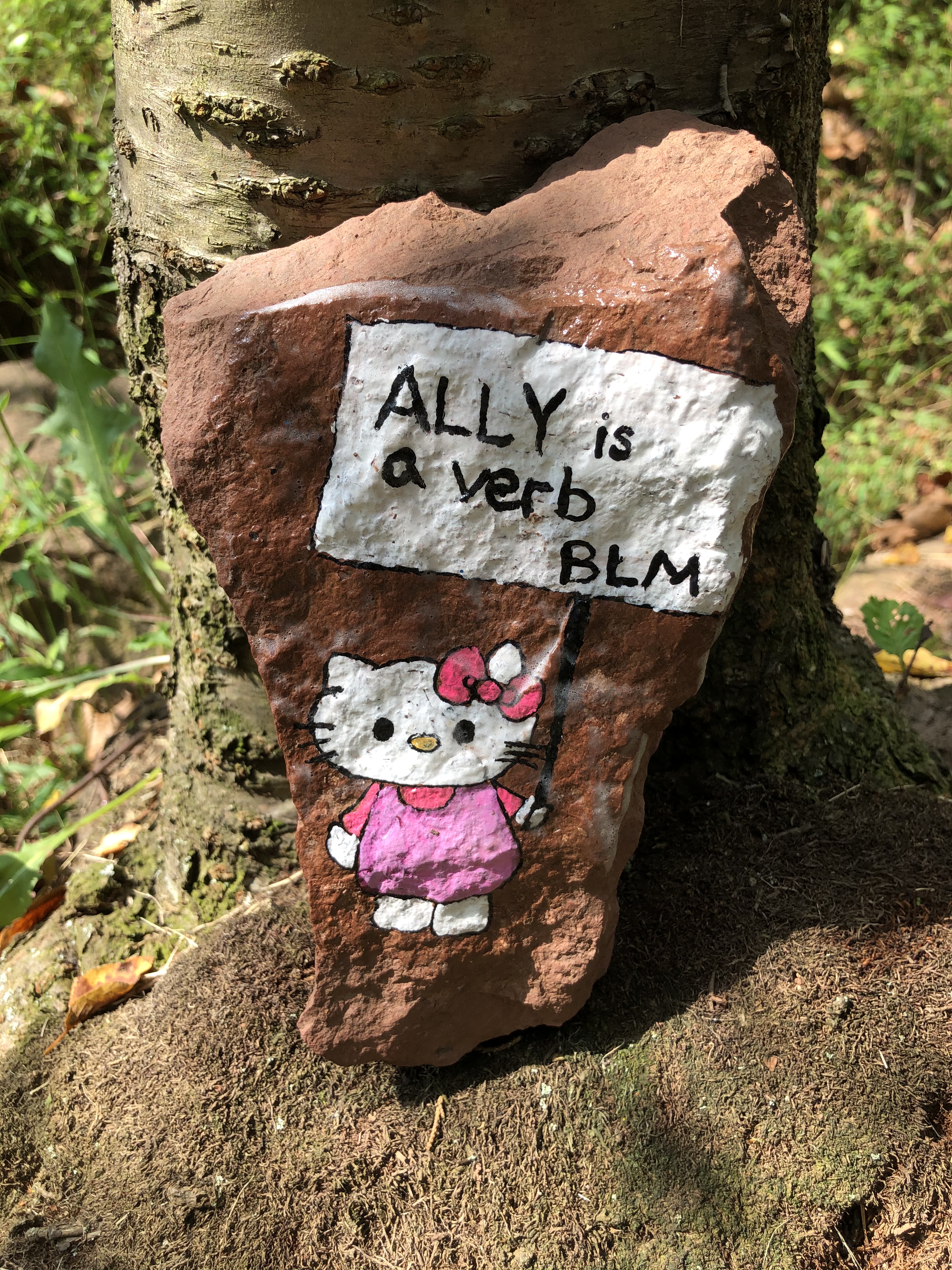 I had thought we were pretty much through with the whole “summer rocks” thing, at least the number of painted rocks in our neighborhood found along our walking paths has diminished. But still, with the close of summer and the promise of fall waiting to be revealed, I have found a few more of these graphic stones worth sharing.